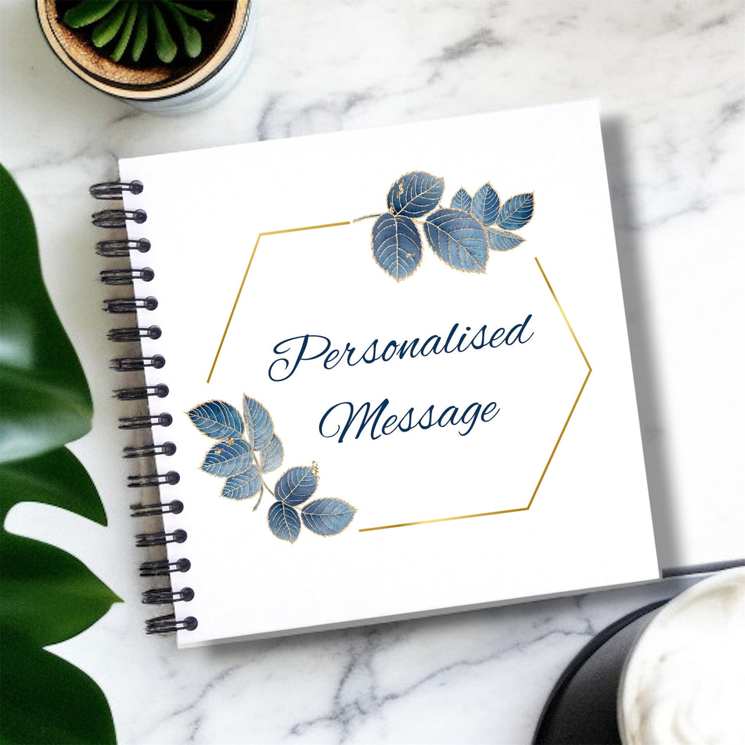 Personalised Hexagon Blue Gold Leaf A3/A4/A5 Scrapbook, Photo Album, Guest Book, Memory Book, Special Gift